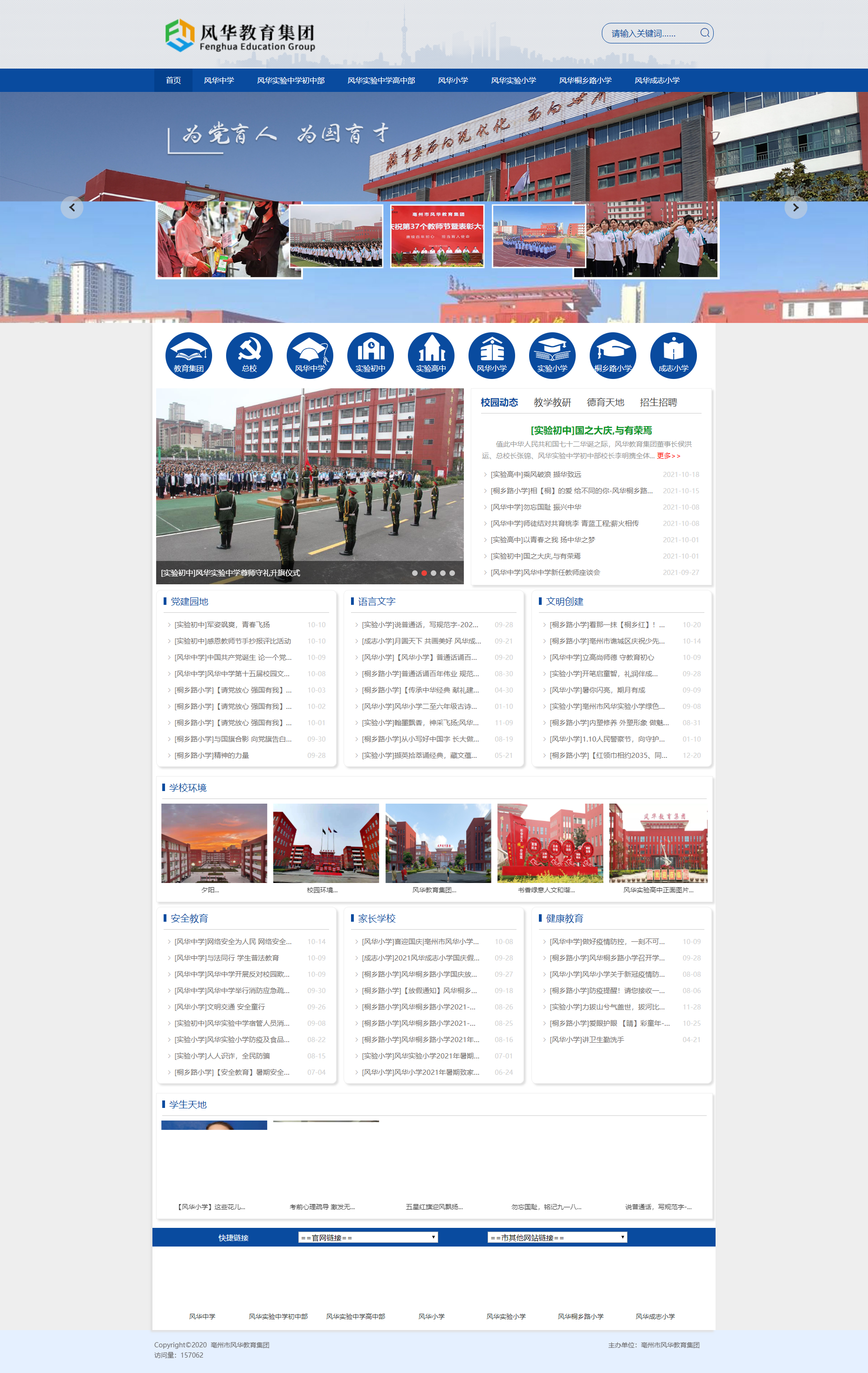 風(fēng)華中學(xué)自2008年第一次中考以來(lái),連續(xù)13年中考成績(jī)綜合排名亳州市第一名,每年都有90%以上的學(xué)生考取省級(jí)示范高中。贏得了“管理嚴(yán)、質(zhì)量高、教風(fēng)正、學(xué)風(fēng)濃”的贊譽(yù)。先后被國(guó)家部委,省市縣區(qū)等部門命名為“中國(guó)西部教育顧問(wèn)單位”、“江蘇省英語(yǔ)學(xué)科建設(shè)和實(shí)踐基地”、“安徽省地方稅收教育基地”、“安徽省科技創(chuàng)新試點(diǎn)學(xué)校”、“亳州市高校畢業(yè)生就業(yè)見習(xí)基地”;先后榮獲“亳州市民辦非企業(yè)先進(jìn)單位”、“亳州市安全綜合治理工作先進(jìn)單位”、“亳州市安全文明校園”、“安徽省民辦學(xué)校先進(jìn)單位”、“安徽省人民防空先進(jìn)單位”、“全國(guó)民辦學(xué)校先進(jìn)單位”、“中國(guó)民辦教育百?gòu)?qiáng)”、“亳州市‘雙比雙爭(zhēng)’先進(jìn)社會(huì)組織黨組織”、“亳州市五星基層黨組織”等榮譽(yù)稱號(hào)。